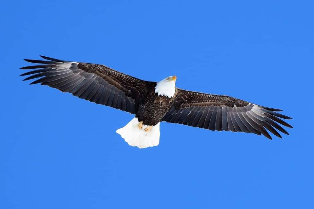 This afternoon on my drive to the office I actually got to see 2 Bald Eagles soaring in two different locations. I didn’t get nearly enough time to study either of them but hopefully next time. They hold such beauty and strength. They glide so effortlessly and gracefully. The sky was so clear and blue just like in this picture although I can not take photo credit on this googled image. My capture was with my eyes only this time and was far more beautiful and perfect as the Bald Eagle soared in a circular pattern for my viewing. This was the closest image I could find however it still doesn’t give it full justice of its perfection, beauty and strength.